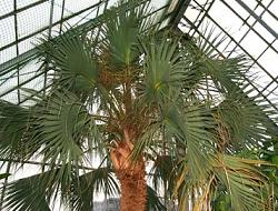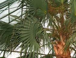 ノコギリヤシはヤシ科シュロ属の植物。高さは3m前後で、北アメリカ南部のフロリダからテキサスに広く分布し、オリーブ大の濃い赤の果実をつける。